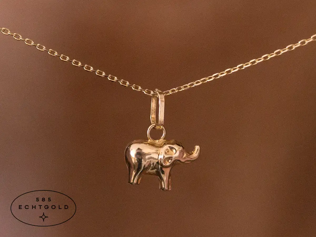 Dieser Elefanten-Anhänger ist aus 585 Gelbgold gefertigt. Mit seiner Größe von ca. 1cm (ohne Collierschlaufe) lässt er sich zu jedem zarten Goldkettchen tragen. Ein treuer Begleiter für jeden Tag. In vielen Kulturen ist der Elefant ein Symbol für Glück und steht außerdem für Stärke, Weisheit und Ausdauer.