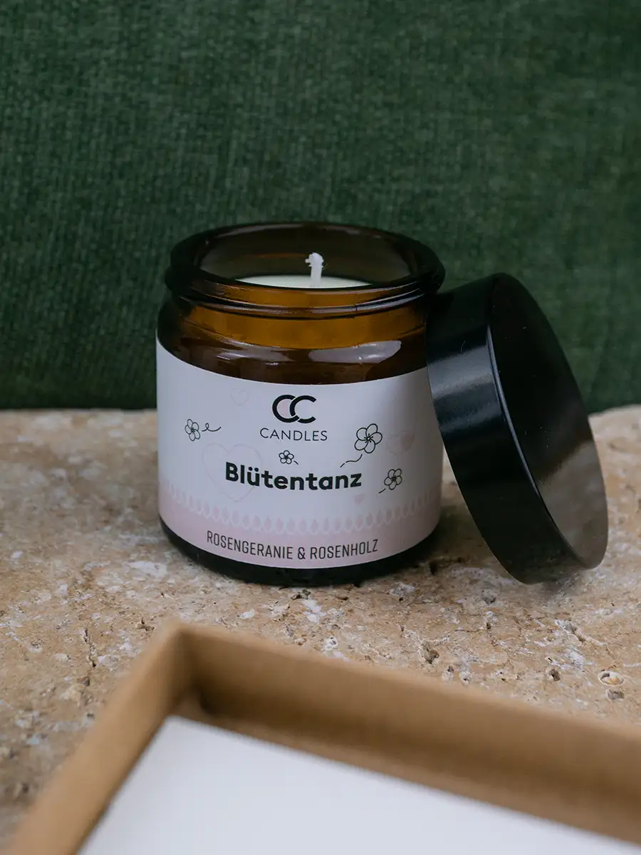 Begleitet wird sie von der Kerze „Blumentanz“, deren sanfter Duft einen Hauch von blühender Frische in jeden Raum zaubert. Ihr warmes Licht schafft eine entspannte Atmosphäre, ideal zum Abschalten und Genießen.