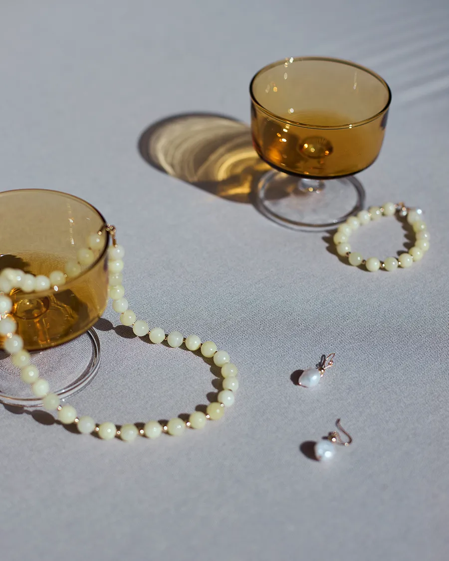 Unsere Halskette „Sand“ besteht aus gefärbter Jade in warmen, natürlichen Tönen. Die 8 mm großen Perlen werden durch feine, 14 Karat Gold gefüllte Elemente ergänzt und verleihen der Halskette einen sanften, sommerlichen Look. Optional kannst du sie mit einem Perlenanhänger wählen – für eine persönliche Note. Denn: jede Süßwasserperle ist durch ihre unregelmäßige Form ein absolutes Unikat. Ein leichtes, stilvolles Schmuckstück, das dich durch den Sommer begleitet und sich wunderbar kombinieren lässt. Passend dazu gibt es auch ein Armband Sand. Und: das Set mit Halskette und Armband gibt es auch in blau.